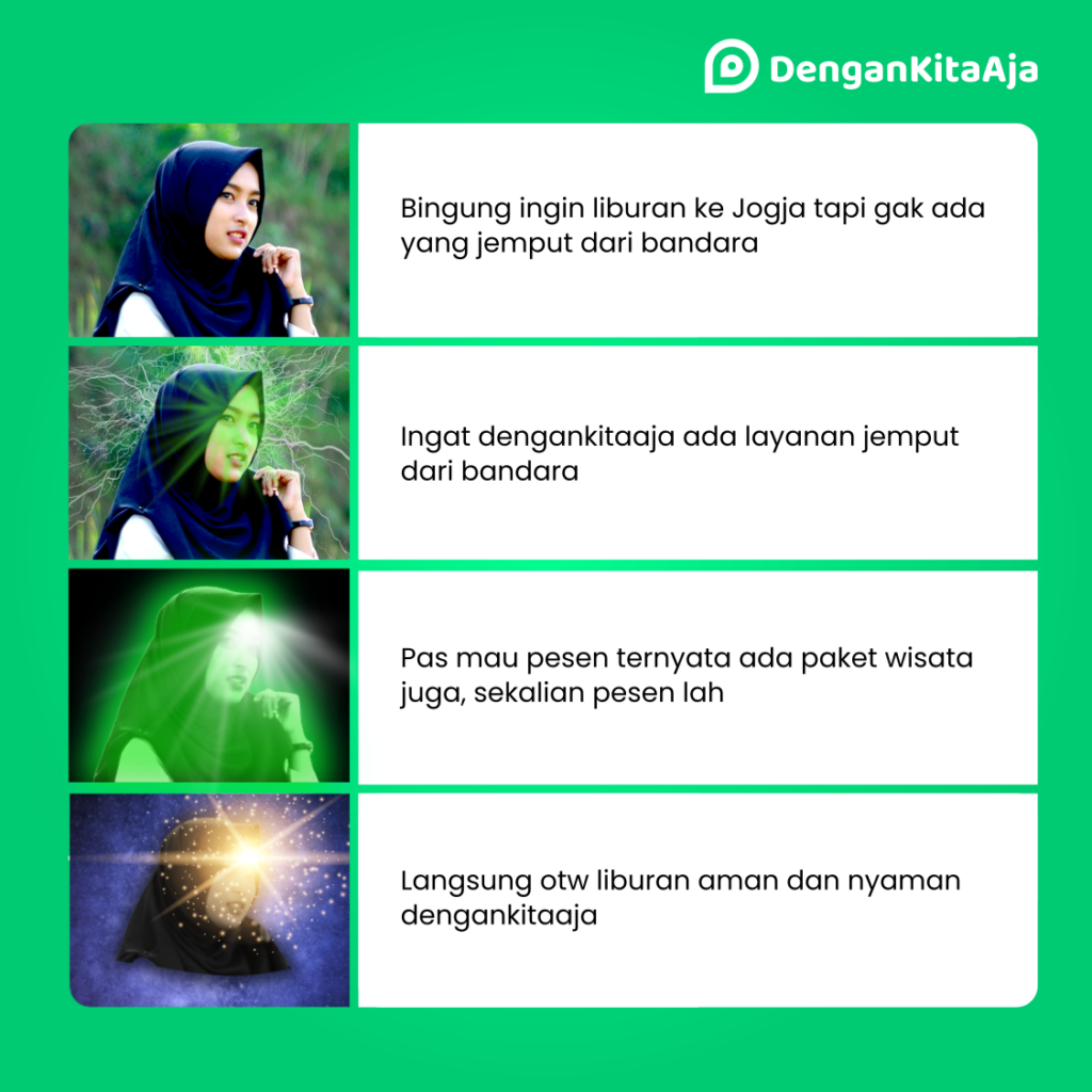 Melalui layanan ini perjalanan wisata kamu jadi lebih rileks dan menyenangkan karena semua tipe perjalanan sudah terhandel bareng DenganKitaAja.